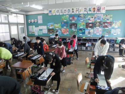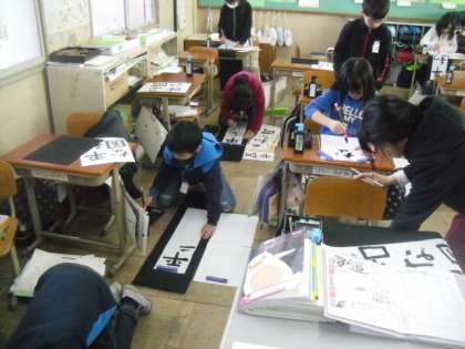 今回の書写では毛筆で大きな画仙紙に書きました。