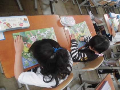 線で結んだり数図ブロックを使ったりいろいろな方法で考えました。