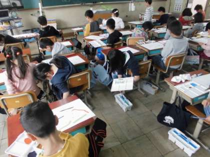 図工の学習で絵の具を使って「色・形 いいかんじ」という単元の学習をしました。