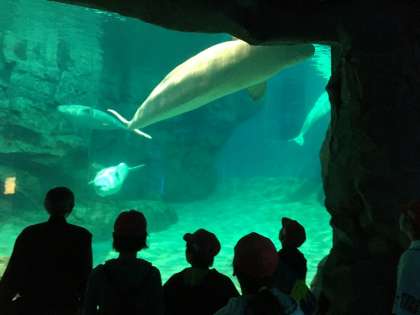入ってすぐに,シャチやベルーガのコーナーがあり,子どもたちも興奮状態です!