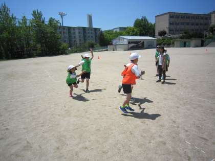 バトンパスの練習をしてもなかなかうまくいかず,四苦八苦しています。
