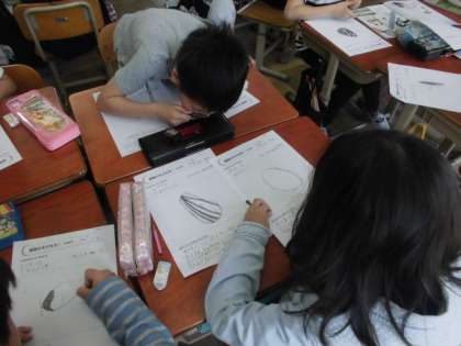 じっくりと観察して,色・形・大きさについて調べることができました。