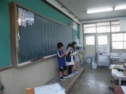 国語の学習で音読発表会をしました。各グループごとに場面の様子が伝わるように工夫して音読していました。