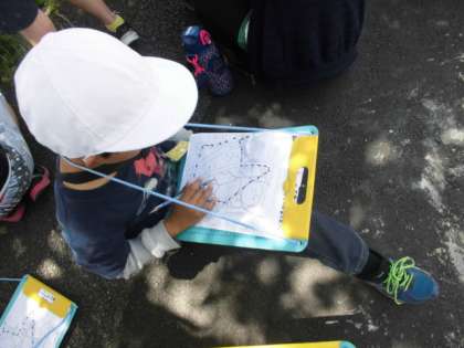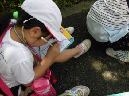 まちたんけんで気づいたことをとても熱心にメモをしている姿がありました。