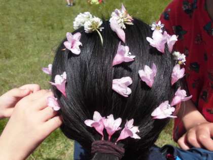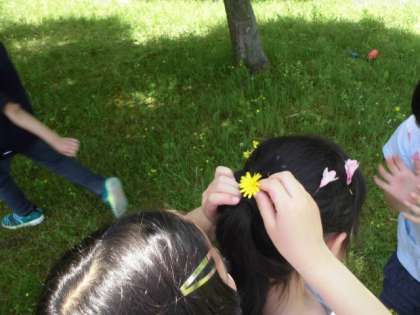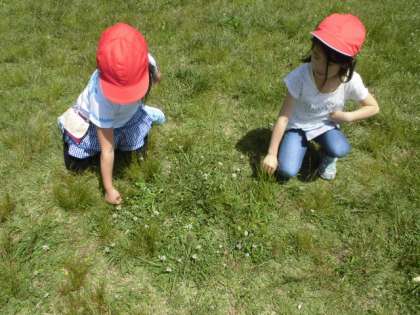公園内には様々な草花がいっぱい。草つみをしたり花かんむりをつくったり,おままごとのような遊びをしたりと,楽しんでいました。