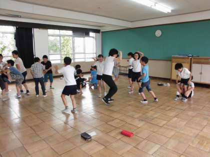 レク係では,キャンプファイヤーの企画進行を中心に準備をしています。部屋レクやバスレクなどたくさん仕事はありますが,今回はキャンプファイヤーで取り組むゲームをどう説明するか,そうすればみんなが楽しむことができるかを考え,実際にやってみました。はじめてやったゲームも大盛り上がりでした。
