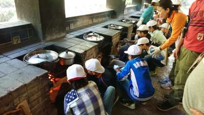 調理担当、かまど担当、ごはん担当とそれぞれが全力でがんばってます。