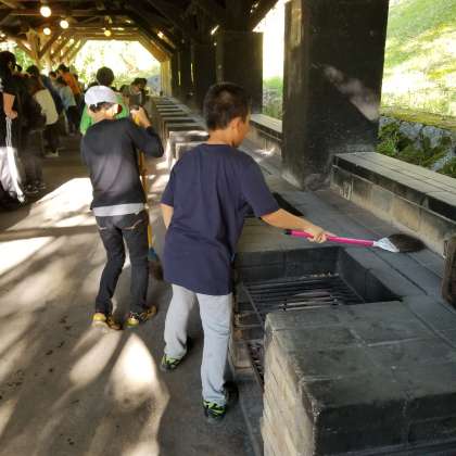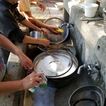 最高に美味しい鳥すき焼きができました。後片付けも全員で協力してがんばっています。