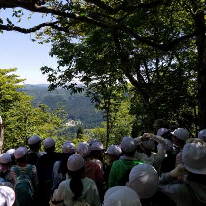 みんなで やっほー と叫ぶと なんと声が届きました。