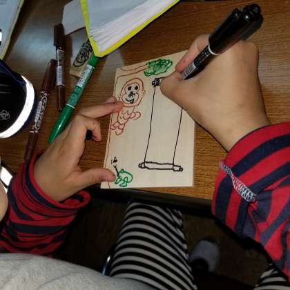 思い出に残るようなドリームはがきを作ろう,というめあてで木はがきを書いています。