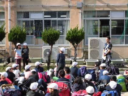 5年生は,「花背山の家」から,無事に帰校しました。学校での解散式の様子です。