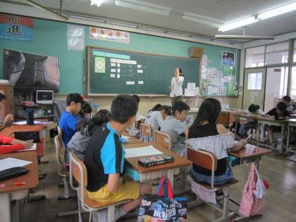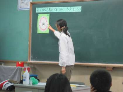 食の指導で,栄養教諭の谷村先生が来てくれました。