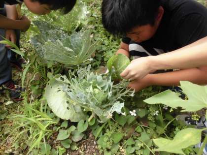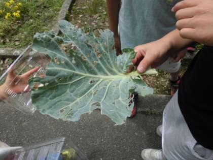 子どもたちは,キャベツの葉をよく観察して,1mmくらいの小さなたまごをたくさん見つけて喜んでいました。