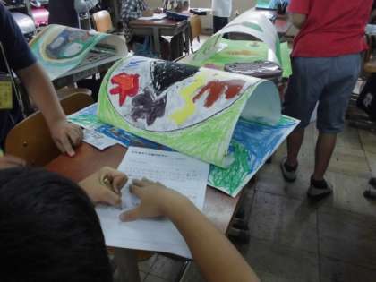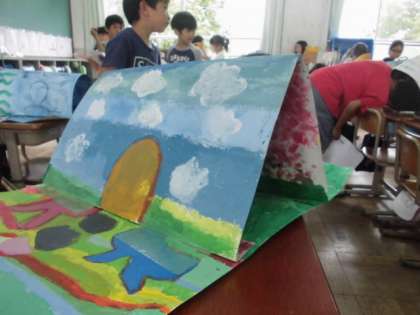 図工の作品の良いところ見つけ,子どもたちは友だちの作品のおもしろさをたくさん見つけていました。