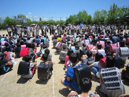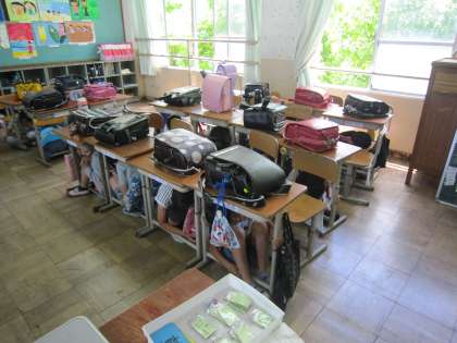 引渡し訓練の前に,子どもたちは避難訓練を行いました。