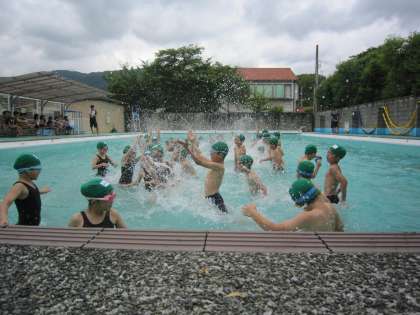 スカッと晴れた良い天気ではなかったのですが,初めてのプールで,とても楽しそうに学習をしていました。