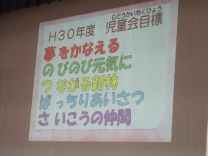 今年度の児童会目標が決まり,全校児童の前で発表しました。