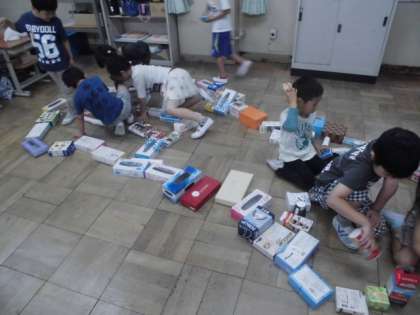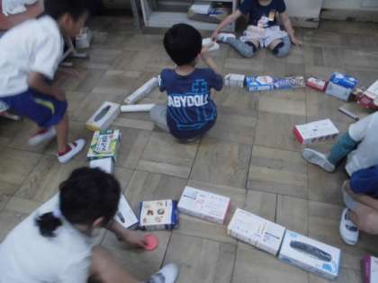 集めた箱をどんどんつなげました。