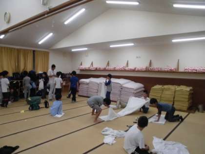 シーツたたみなど後片付けをしています。