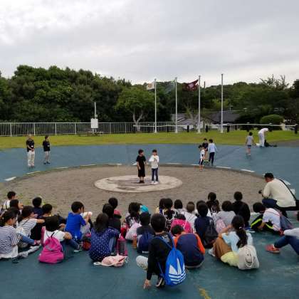 退所式の様子です。みんな元気です。これから鳥羽水族館に向かいます。