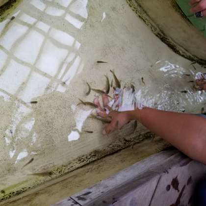 ドクターフィッシュに手を掃除してもらっています。