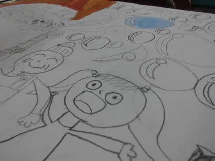 構図や登場人物の表情や色のぬり方を工夫している姿がありました。