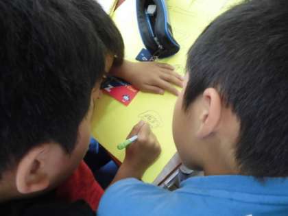 社会の学習で,スーパーマーケットの見学でわかったことをリーフレットにまとめました。グループみんなで協力して作ることができました。