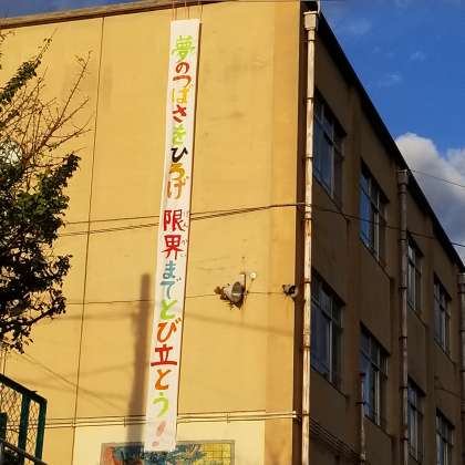 「夢のつばさをひろげ 限界までとび立とう!」のスローガンのもと,子どもたちは全力を尽くします。