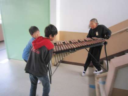 学習発表会に使う楽器を体育館に運びました。