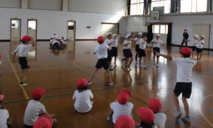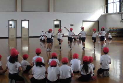 リズムダンスの学習では,グループに分かれて,みんなで楽しくおどるためにはどうしたらよいかを考えました。