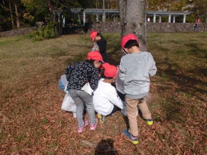 鬼ごっこをしたり,虫を捕まえたり,秋の物を拾ったりと,みんなのびのびと過ごしていました。