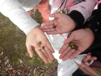 同じどんぐりでも緑のもの,小さいもの,平べったいもの,色が変わりかけのものなど,たくさんの種類がありました。
