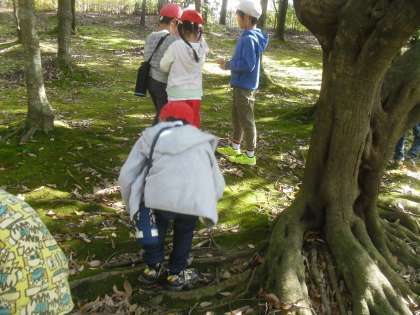 小さいどんぐりや,帽子をかぶっているどんぐり、色の変わっている葉っぱなど,友達に見つけたものを紹介しながら,見つけていました。