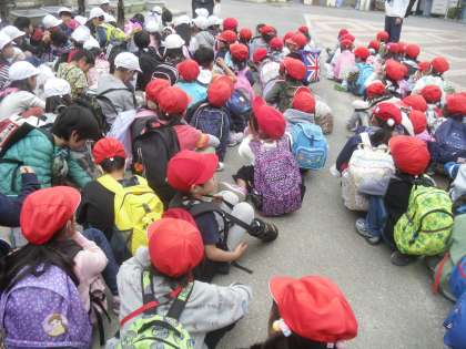 たくさん秋を見つけた後は,学校に向かって歩きました。