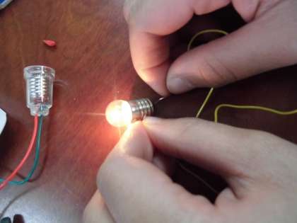 理科の学習で豆電球に明かりをつけるためには,どう線を豆電球のどこにくっつけるとよいかを調べる実験をしました。