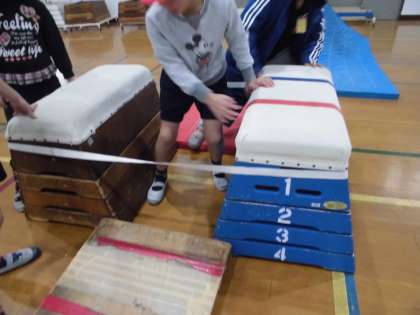 とび箱の準備に慣れてきて,とてもすばやくできるようになりました。