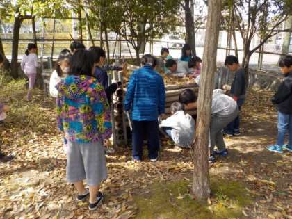今日は初めての理科でした。「しぜんのかんさつをしよう」という単元で,各自虫眼鏡を持ち,中庭や緑の森で草や花,虫の観察をしました。「おー」「すげー」「見てみてー」などの声も聞こえ,自分が見つけたものも友達と共有し,すごく楽しんで観察をしていました。