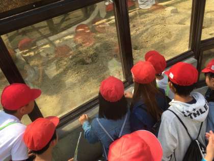 アフリカゾウは体調不良で,遠くからの見学でした。
