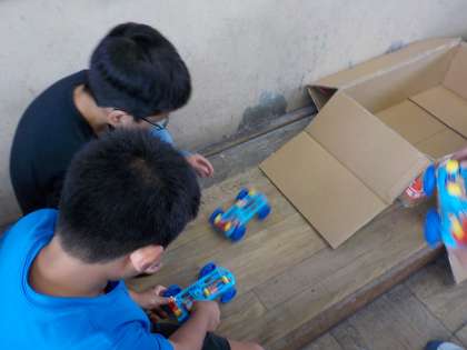 並列つなぎと直列つなぎという2つの電池のつなぎ方を勉強しました。せっかく習ったので,「2つのつなぎ方で車を走らせてみたい」という声が出たので,みんなでやってみました。速さに注目しながらとても楽しく活動できました。