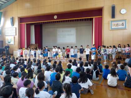 今月は,児童会目標の発表や委員会からの発表,各クラスの人権目標の発表など,盛りだくさんでした。今年度の計画委員会の子どもたちが初めて考えて,やってみた児童集会。みんなにしっかり伝えたい,聞いてもらいたいという思いからいろんな場面で工夫が見られました。