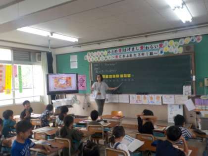 19日(水)のALTのペン先生との学習の様子です。「Hello.everyone.How are you?」という問いかけに対しても,「I'm fine.」や「I'm happy.」等,慣れた様子で自然に英語を発する様子に,子どもたちの力の高さを垣間見ました。その後,「Ten steps」という歌をみんなで楽しく歌いました。