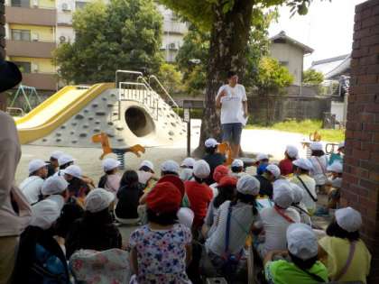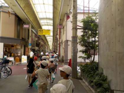 最後は三条会商店街に行きました。日本でアーケードでつながっている商店街の中では日本一に長さの商店街だと説明していただき,子ども達はすごく驚いてました。質問タイムでは,「どんなお店がありますか?」「お店は何件ぐらいありますか?」とたくさん質問していました。