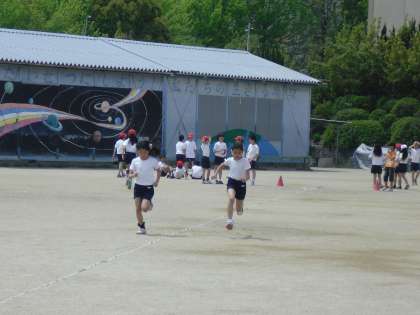 3校時に50メートルのタイムを計りました。昨年より速くなったかな。