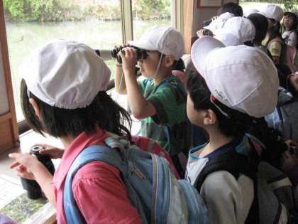 桂坂野鳥遊園と桂坂公園に行きました。野鳥遊園では,バードウオッチングをしました。めずらしい鳥を見つけることができました。桂坂公園では,花摘みをしたり,鬼ごっこをしたり楽しい時間を過ごすことができました。