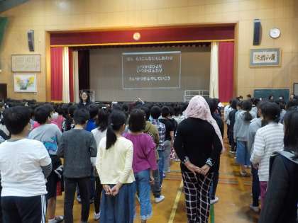 児童集会では,「こころのうた」を毎回歌います。今年度の初めに計画委員と代表委員会で候補を決め,各クラスから投票をしてもらい,決めた曲です。半年ほど,歌ってきているので,どんどん上手になってきました。学習発表会の初めにみんなで歌います。こちらも楽しみしていただけたらと思います。
