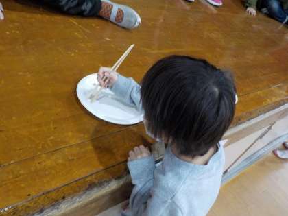 緊張しながらも,じょうずにお箸を使い最後まで頑張っていました。