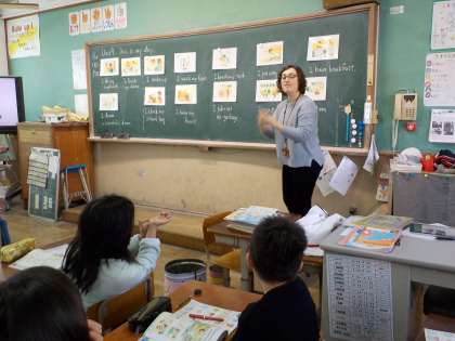 今日はペン先生と学習しました。ある男の子の一日を通して,いろんな表現を勉強しました。子どもたちはなかなか覚えにくいようで,悪戦苦闘していました。