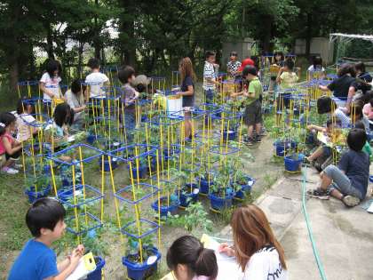 5校時にミニトマトの観察をしました。大きくなった茎や葉っぱの様子を確かめながら観察しました。いつ頃,実ができるか楽しみです。