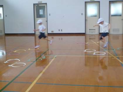 跳んだり走ったり,全身でサーキットあそびを楽しんでいました。