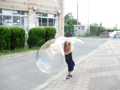 今日の科学クラブでは,ジャンボシャボン玉をしました。うまく大きなシャボン玉を作ってとばしていました。